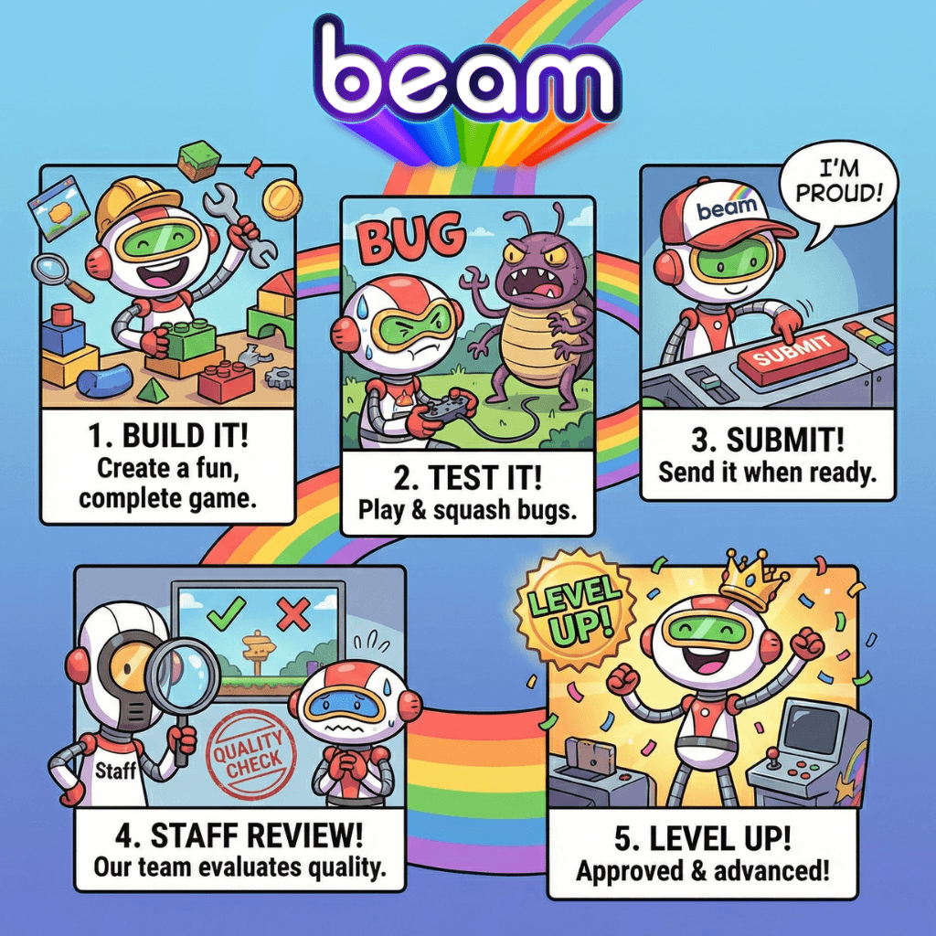 If you've been creating on Beam before this update, don't worry! We've retroactively assigned tiers based on your number of published games. Check your profile to see where you stand—your hard work has already been recognized 🏆🫶